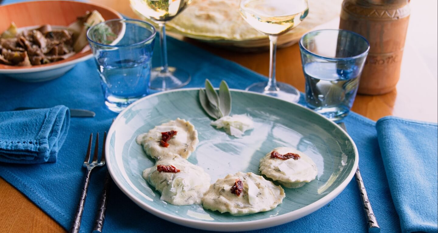 La cucina sarda è una filosofia di vita semplice, genuina, anche frugale, con sapori forti e veri come i suoi formaggi di pecora, le carni cotte nel camino, il pane croccante, l’olio dal gusto intenso e la pasta lavorata a mano ogni giorno dalle donne sarde, che mostrano e insegnano i segreti della loro arte a chi abbia desiderio di imparare.