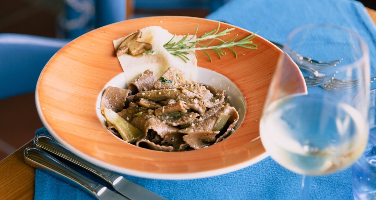 Seguite i profumi... qui c’è un itinerario gastronomico fatto di aromi e sapori della tradizione, tutto da scoprire, a partire dalla prima colazione a km zero, con i mieli di Oliena, le marmellate, i formaggi e i salumi sardi, i pani tipici e i dolci sfornati ogni giorno dalla cucina. I pranzi e le cene hanno profumi semplici e ricchi che non si dimenticano, come i maccarones de busa e i culurgiones (ravioli ripieni di una ricotta introvabile altrove), il porceddu allo spiedo, fino alle seadas al miele, che concludono dolcemente un pasto memorabile.